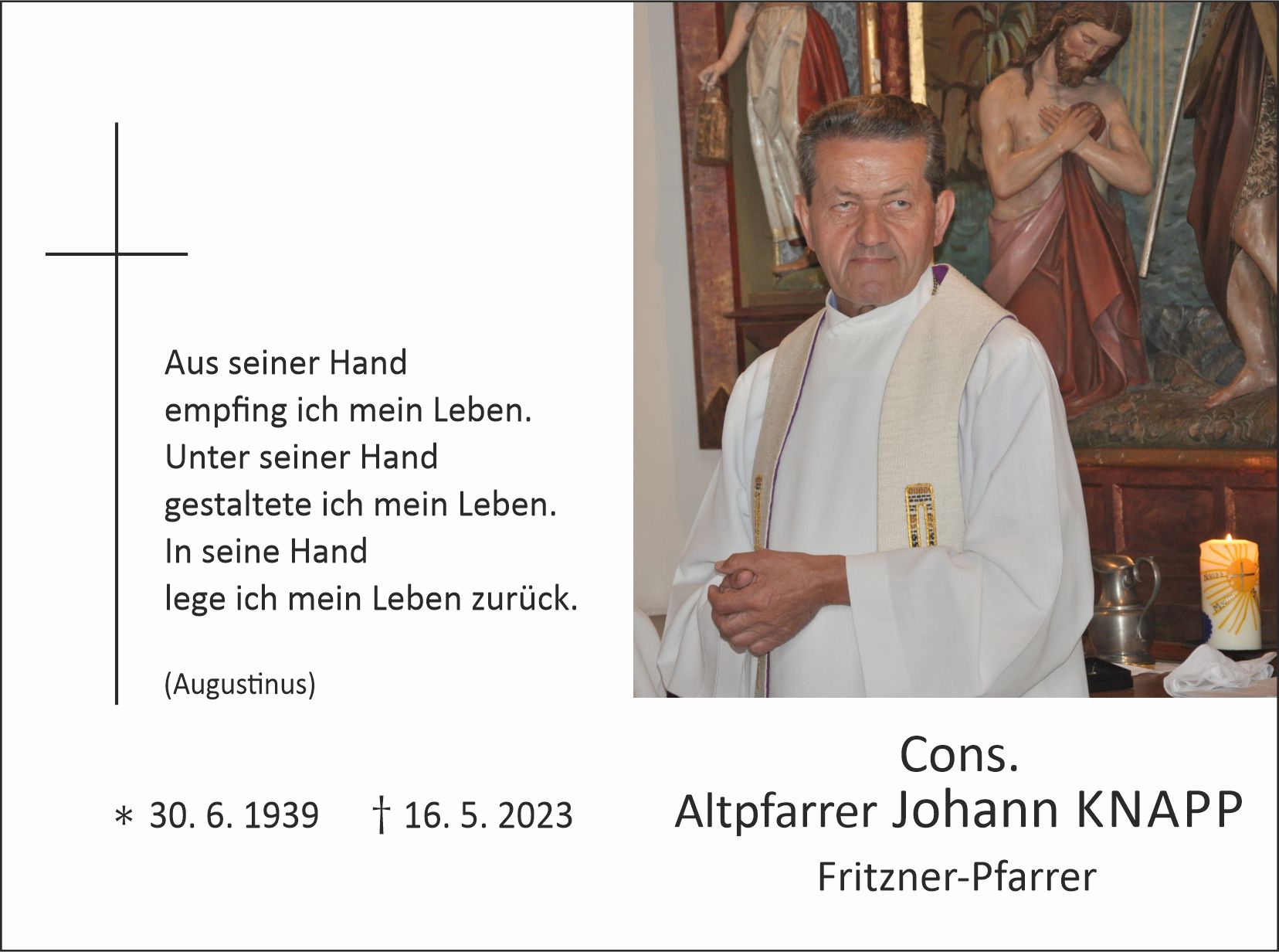 Unser Altpfarrer Cons. Johann Knapp ist am Dienstag, 16. Mai 2023 verstorben.
