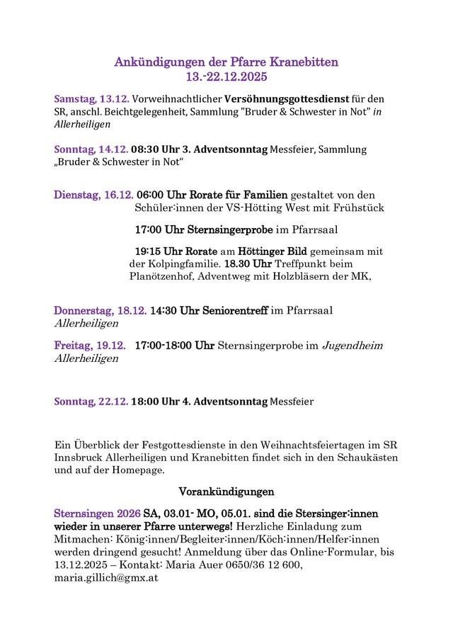 Gottesdienstordnung von 13.-21.12.2025 zum Download