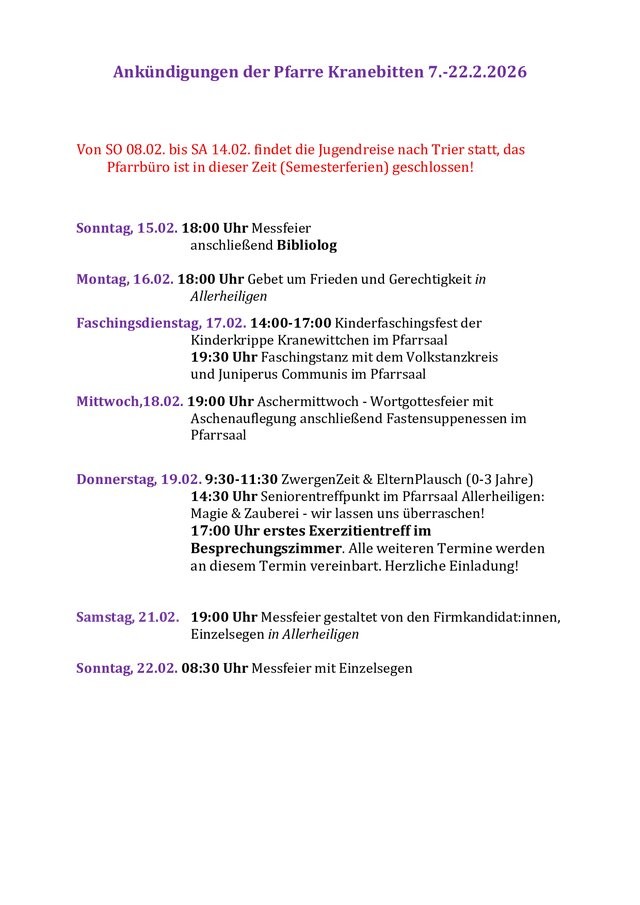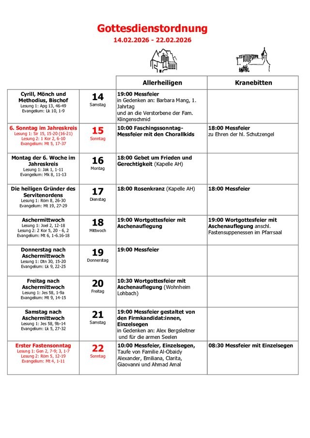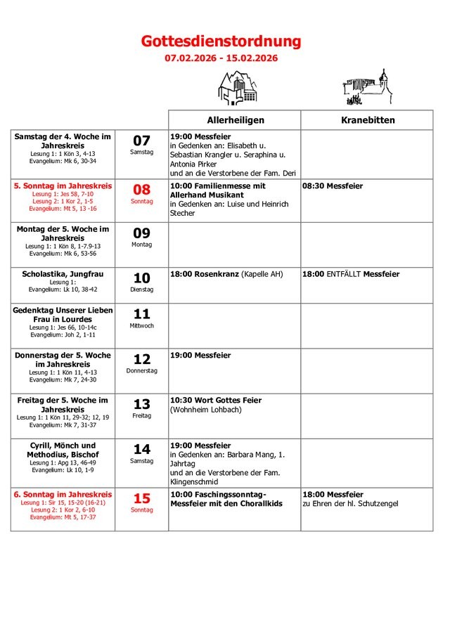 - Übrige Sonn- und Feiertage Messfeier um 8:30 Uhr