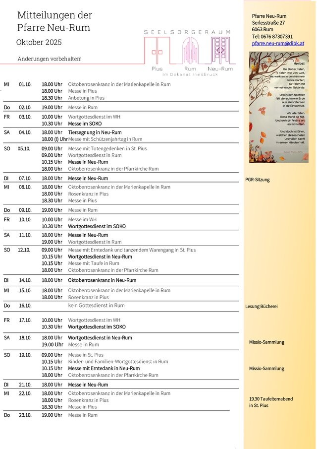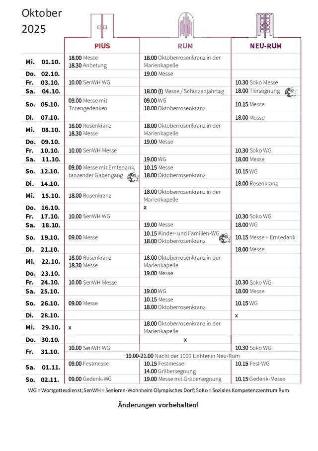 SA 18.00 Uhr Messe und Wortgottesdienst im Wechsel