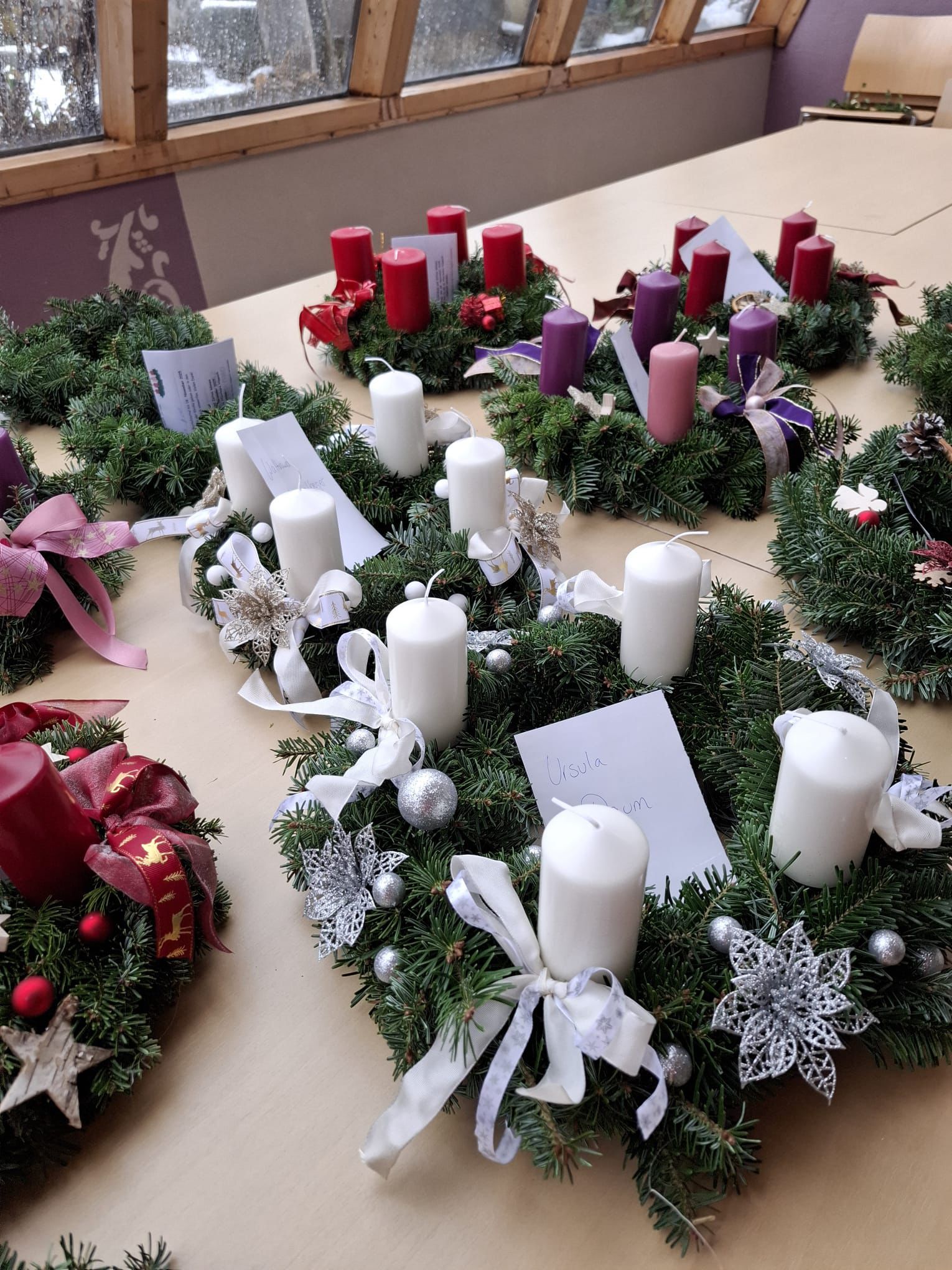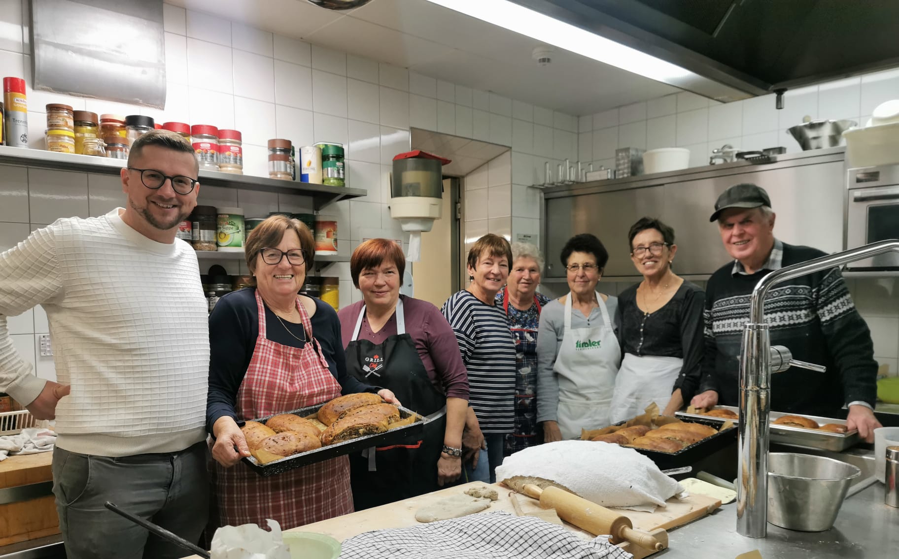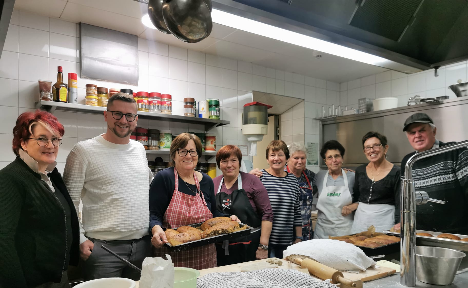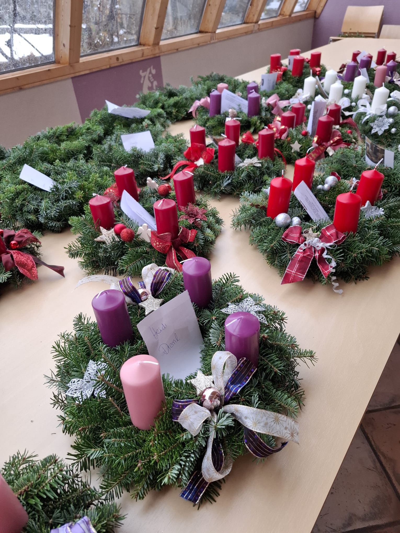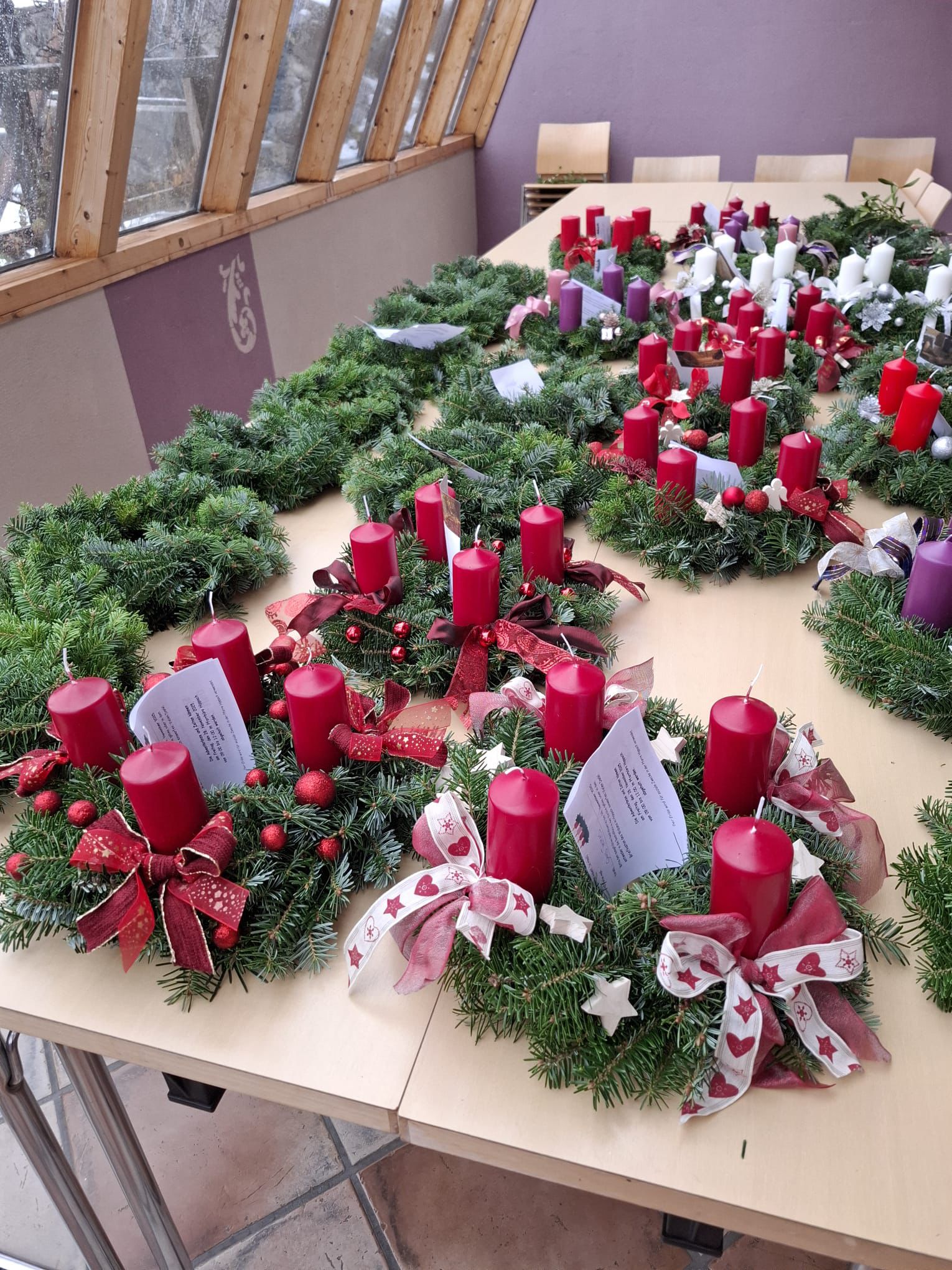 Viele Frauen trafen sich, um aus Tannengrün, Kerzen und Schleifen eine große Vielfalt an Adventkränzen zu binden. In Hippach duftete es außerdem in der Küche beim Garberwirt nach frisch gebackenen Zelten, die nach bewährten Hausrezepten zubereitet wurden. So entstand eine bunte Auswahl an Kränzen und feinem Gebäck, die im Pfarrbüro abgeholt werden konnten.