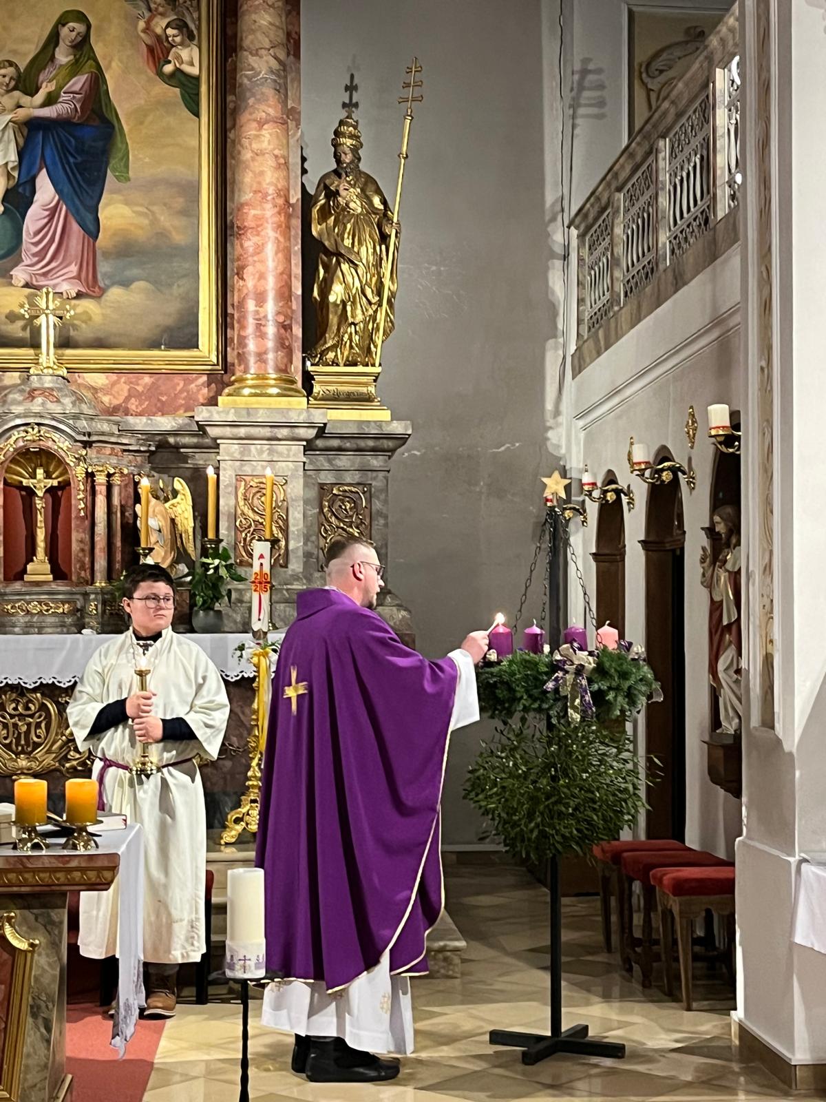 Im Mittelpunkt stand der Beginn des Advents, jener besonderen Zeit der Erwartung und Vorbereitung. Nach der Segnung entzündete unser Pfarrer die erste Kerze am Adventkranz, der dieses Jahr wieder von der Landjugend liebevoll gemacht wurde. Anschließend stimmten wir uns mit dem bekannten Lied „Wir sagen euch an den lieben Advent…“ auf die bevorstehende Zeit ein.