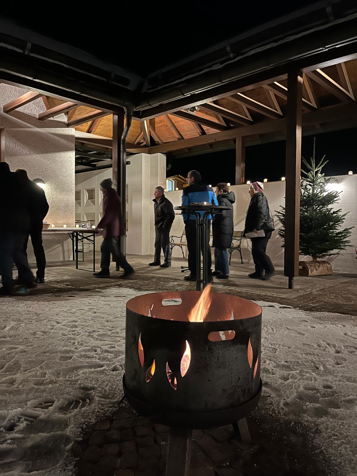 Im Anschluss an die Messe lud der Pfarrgemeinderat zu einer Agape ein. Bei Punsch, Glühwein, Zelten und Lebkuchen kamen wir rund um die wärmende Feuerschale gemütlich miteinander ins Gespräch.
