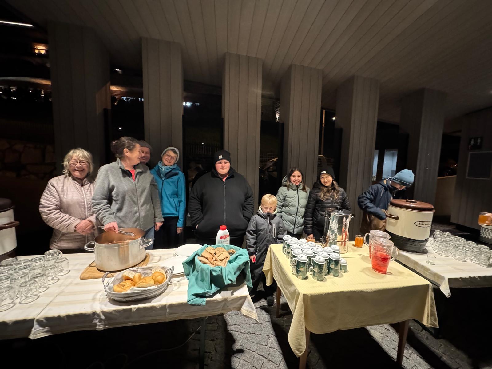 Als Ausklang lud der Pfarrgemeinderat zur Agape ein, bei der Würstl und Punsch bereitstanden. Während sich die Erwachsenen im Gespräch austauschten und den Abend genossen, tobten die Kinder fröhlich herum.