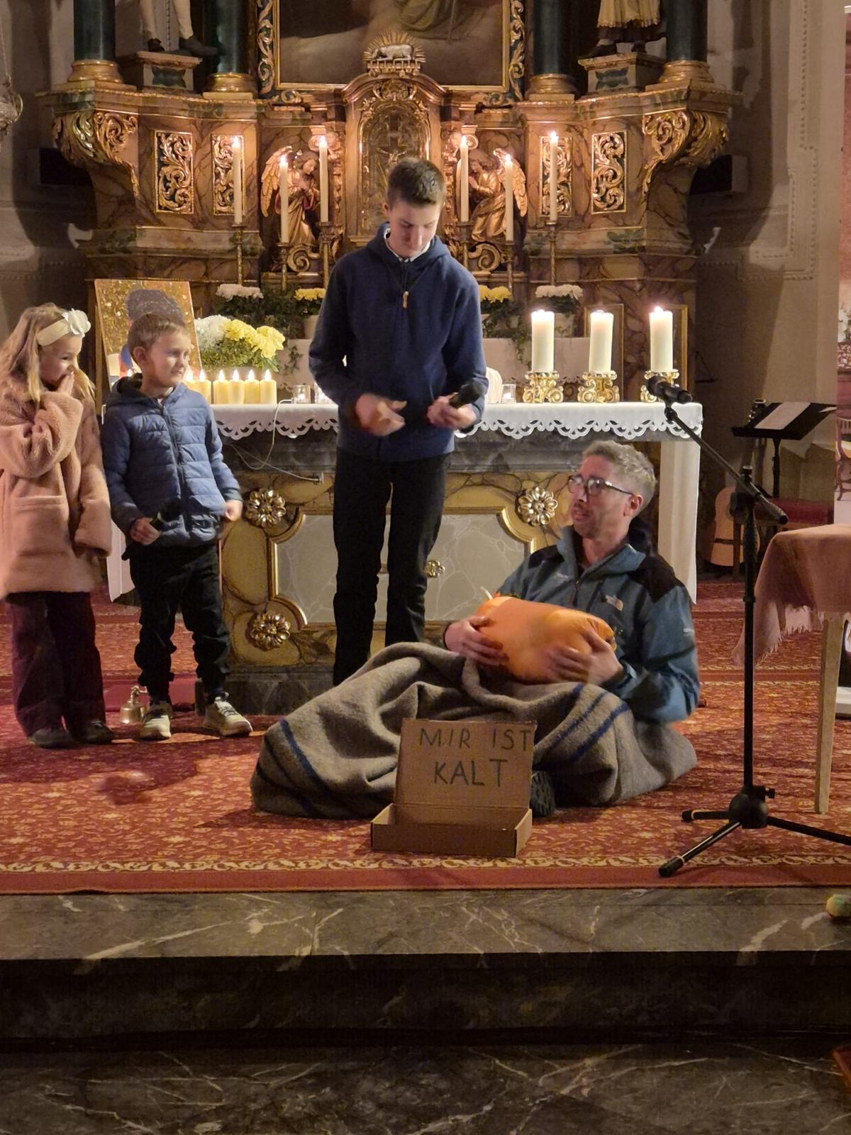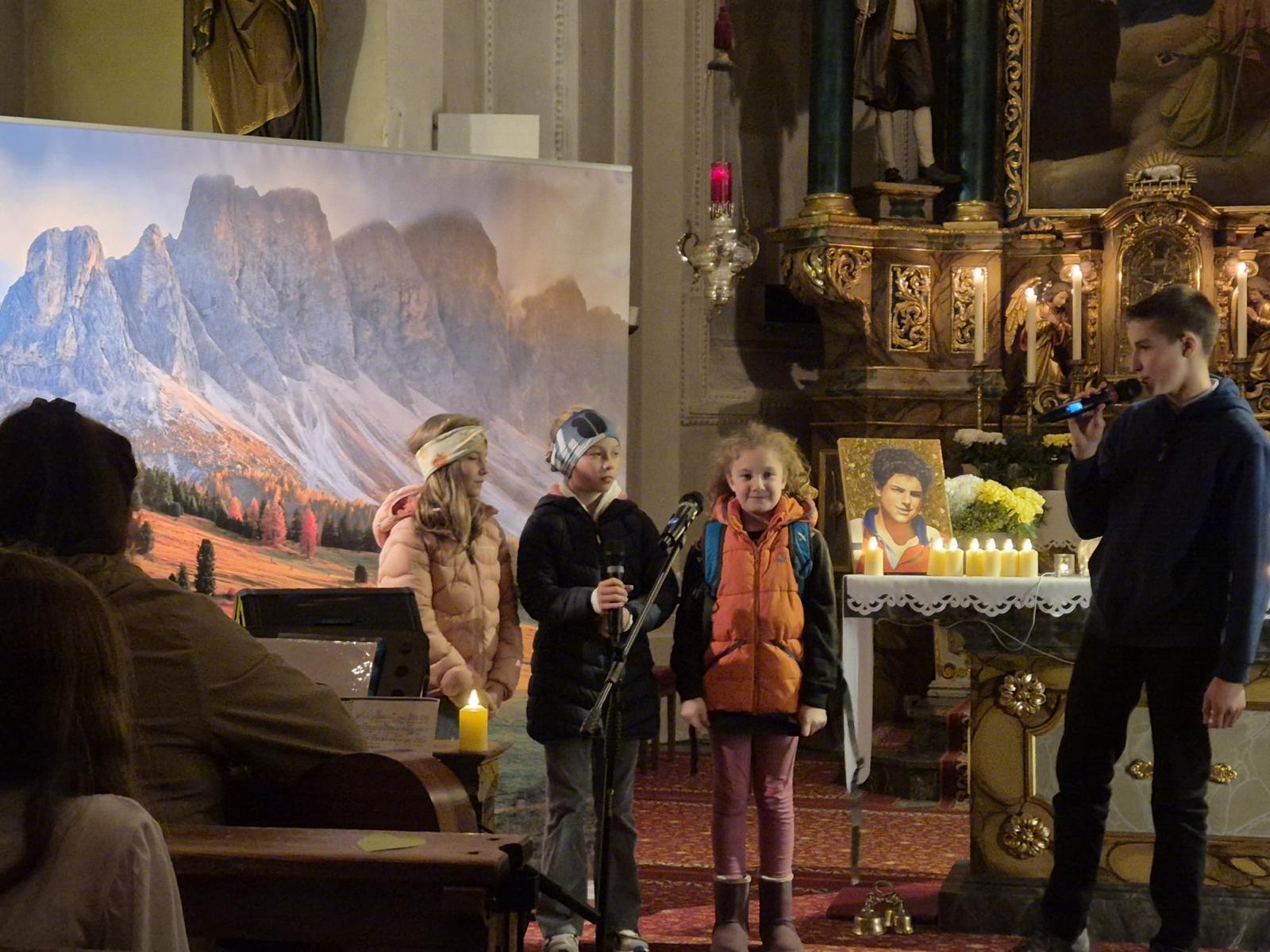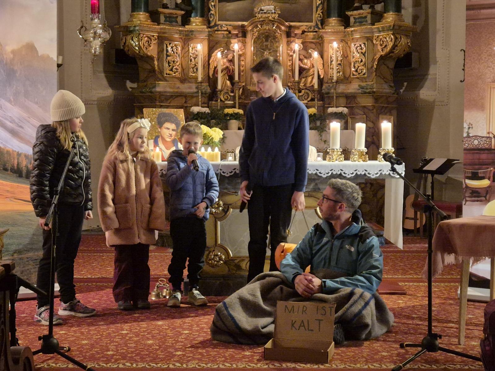 Den Anfang machte das Kindertheater über den heiligen Carlo Acutis. Mit großem Interesse lernten wir Carlo zuerst kennen und staunten nicht nur über seinen unversehrten Leib, sondern auch über sein großes Herz und seinen lebendigen Glauben. Mit schwungvollen Liedern wurde die Geschichte umrahmt. Als besonderen Höhepunkt durften wir alle am Ende des Theaters in der Heiligen Eucharistie Gott unseren Herrn in unserer Mitte begrüßen und anbeten.