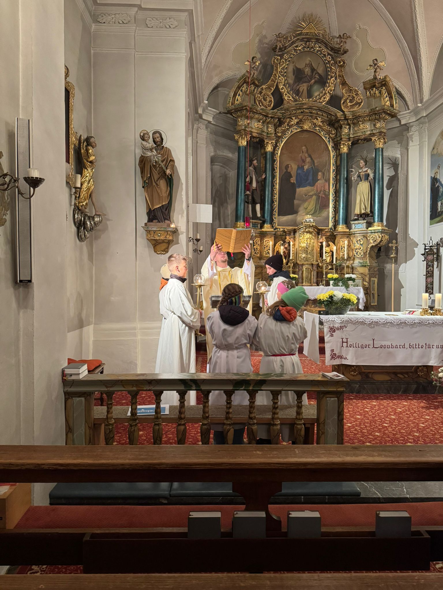 Zu Beginn der Feierlichkeiten zogen der Pfarrer und die Ministranten gemeinsam in die Kirche ein. Dabei wurde traditionell Weihrauch verwendet, um die Statue des heiligen Leonhard feierlich zu inzensieren, was die Gläubigen daran erinnerte, sich der besonderen Fürsprache ihres Schutzpatrons bewusst anzuvertrauen und sein Wirken in ihr Leben einzuladen.