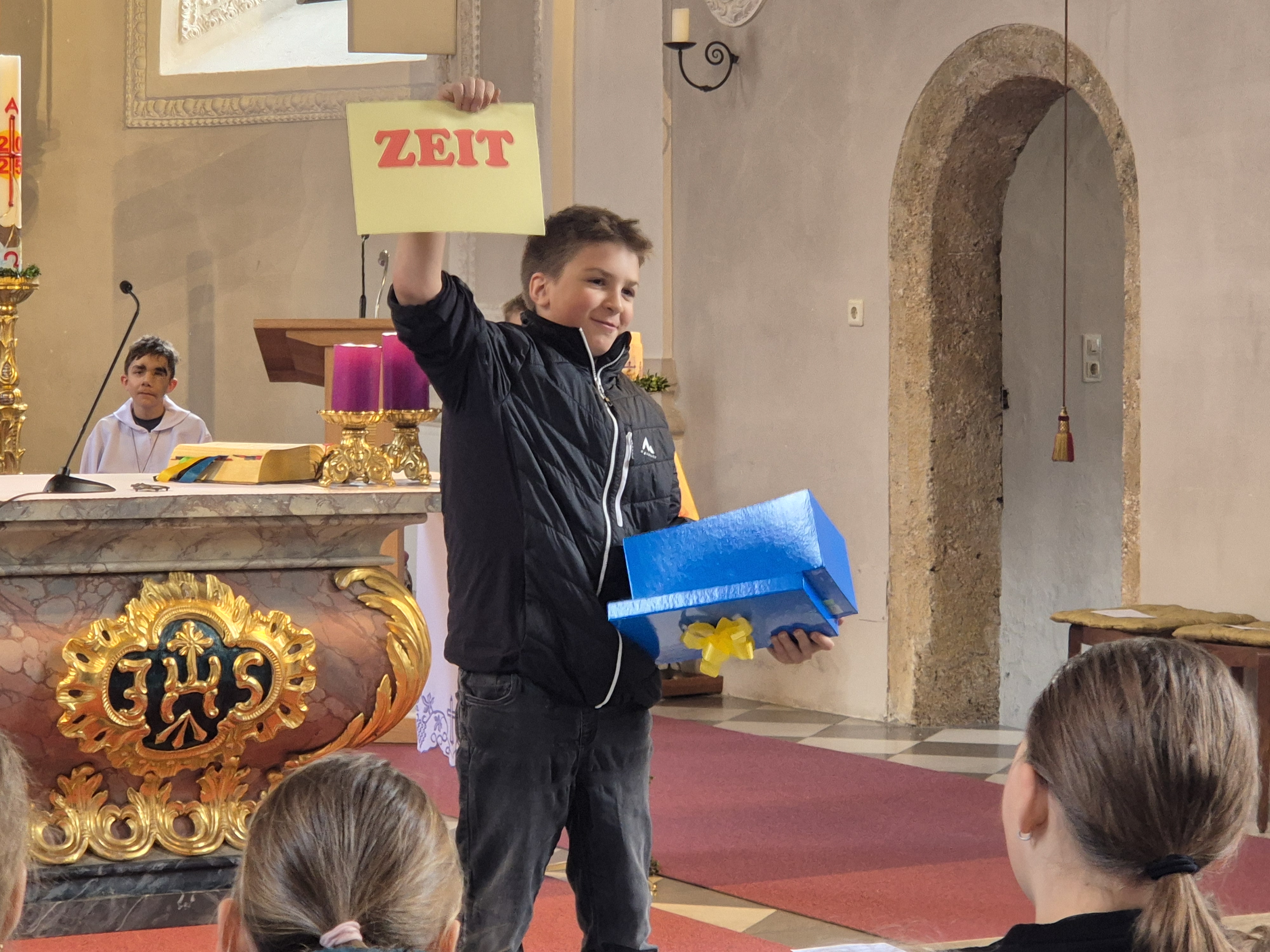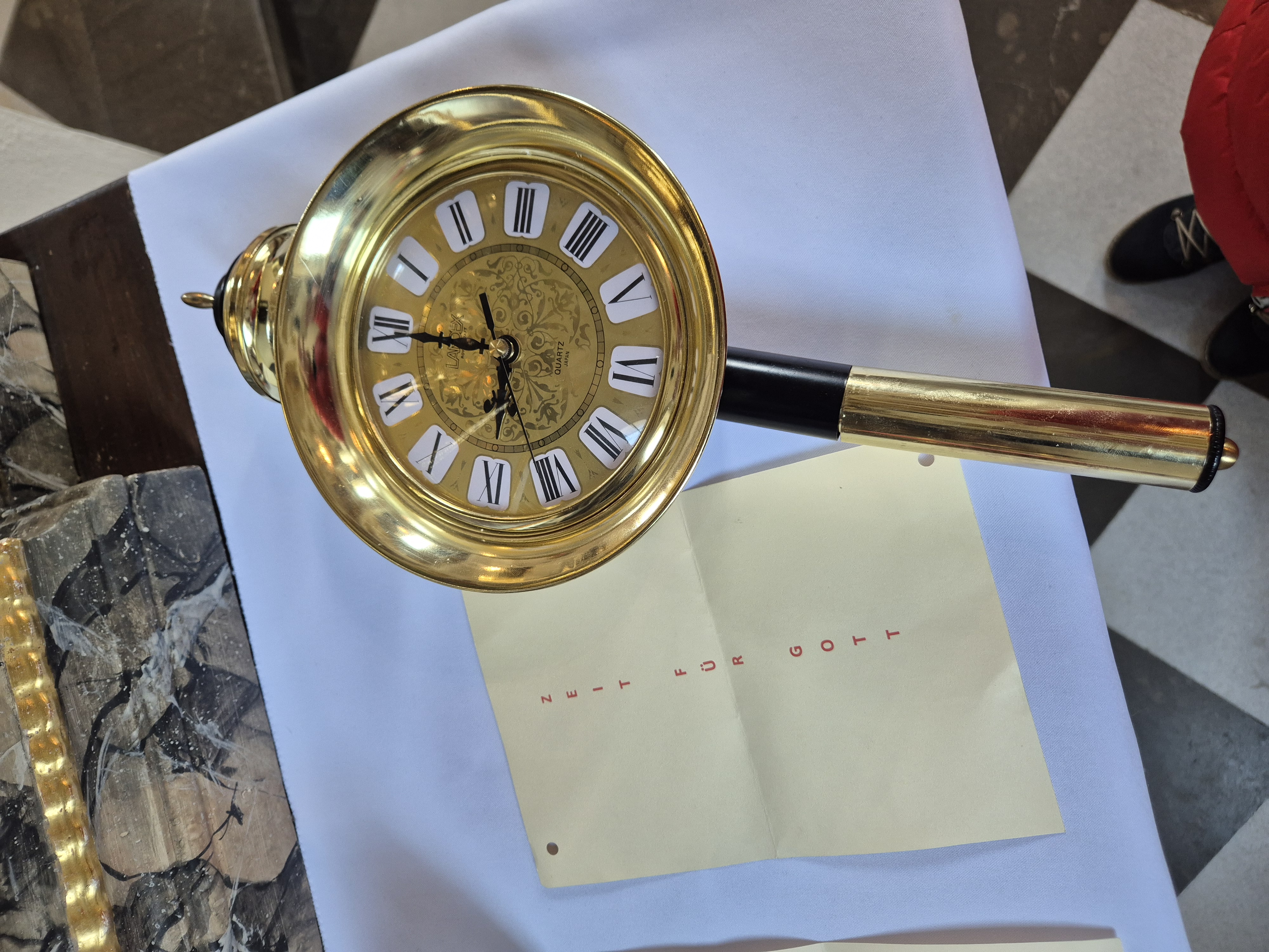 Auch die Predigt unseres Pfarrers griff diesen Gedanken auf. Er hatte ein besonderes Geschenk für uns vorbereitet: Ein Paket, in dem sich etwas scheinbar Unsichtbares verbarg – ZEIT. Zeit, die wir uns wieder bewusst schenken sollen: Zeit für uns selbst, Zeit für unsere Mitmenschen und Zeit für Gott.